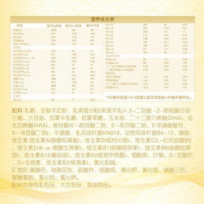 添加全脂羊奶粉,蕴含更高的营养价值,满足未成年人的身体所需。丰富的维生素,帮助身体消化,更好吸收营养物质。