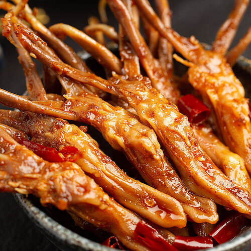 精挑细选上好品质的鸭舌,个大饱满,肉质细腻,越嚼越香。多种自然香辛料腌制,去除腥味,成就了产品鲜嫩好滋味。