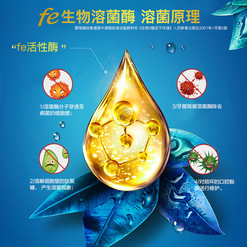 蕴含fe生物溶菌酶成分,不含氟,成分安全可放心使用,同时缓解口腔溃疡和减少复发,保护口腔和牙齿健康。