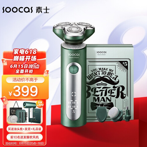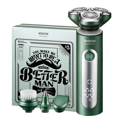 复古墨绿色搭配金属机身,颜值出众典雅时尚,让人一眼就爱上。采用双环弧面刀网设计,多方位剃除面部胡须,恢复面部洁净状态。
