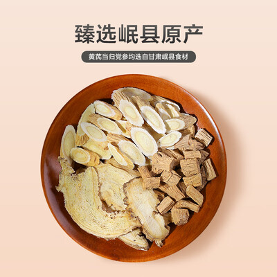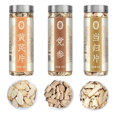 内含三种常见的滋补中药,黄芪、党参和当归,它们都呈现自然的色泽,散发中药清香。罐装包装非常精细,可保护药材不受潮湿。