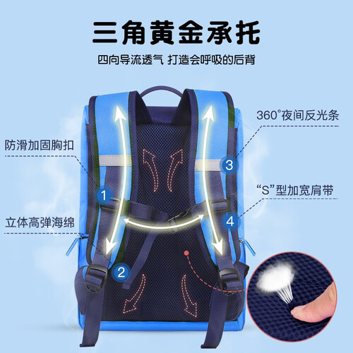 采用多点卸力减负设计,符合人体工学,有效分解受力点,减负助成长。3D透气蜂窝背垫,均匀受力,透气舒适,背负不闷热。