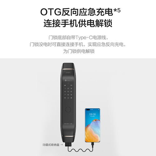 解锁上锁全自动,反应快速,方便快捷还安全。支持连接华为智慧生活APP,可远程查看管理,省心省力。支持OTG反向充电,告别断电困扰。