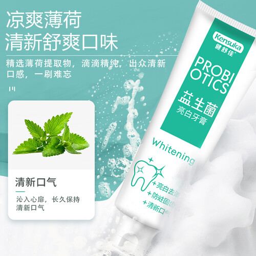 含有益生菌,调节口腔菌群平衡,缓解异味,使得口腔更健康清新。精选薄荷提取物,可清新口气,清爽一整天。