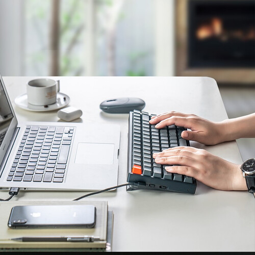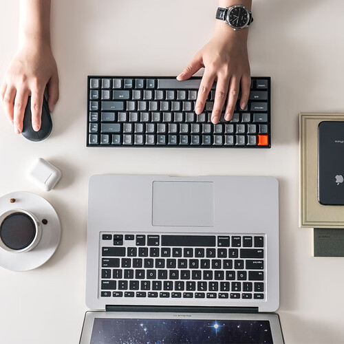 采取87键紧凑布局,机身小巧简约,少占用桌面位置,腾出更多空间,加之蓝牙有线双模连接,打字自由无束,满足不同场景。
