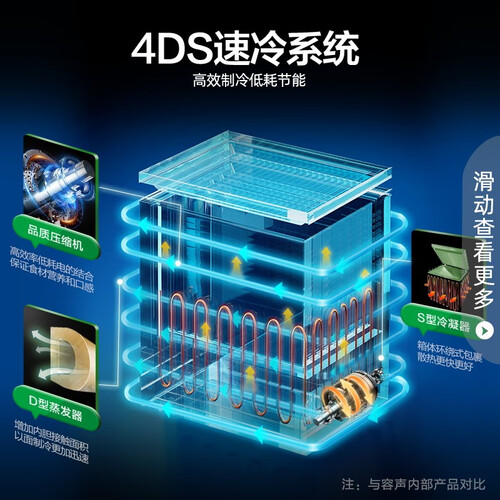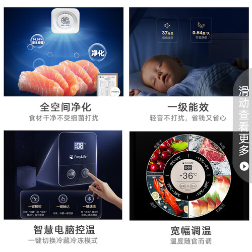 钛空金外观耐磨损易清理美观简约,自动感压式减霜保持空间净化食材卫生健康。一级能效安静不打扰节能省电。