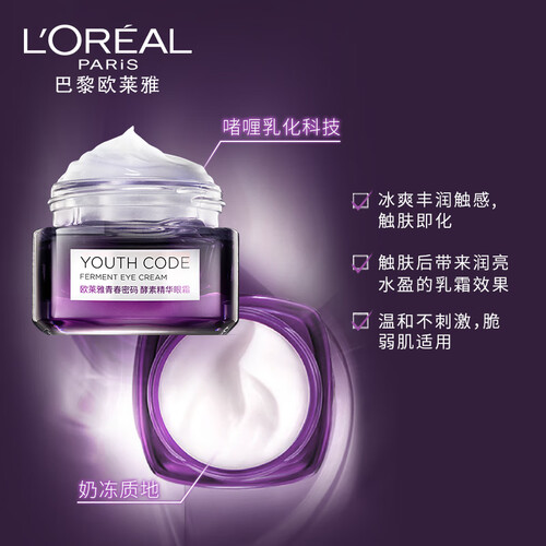 眼霜中加入了黑洛西成分,能够轻松淡退黑眼圈,让你从此摆脱熊猫眼。搭配上二裂酵母成分,令肌肤更加弹润细腻。