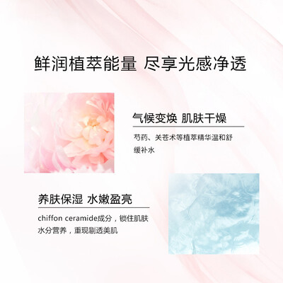 蕴含雪纺神经酰胺,充分修护皮肤屏障,带来水嫩柔滑的肌肤状态。加入芍药根提取物和人参根提取物,为肌肤赋能,令肤质清透自然。