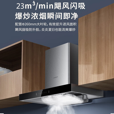 23m³/min大吸力,瞬吸油烟,防止油烟扩散,使厨房更清新。460Pa强劲风压,保证排烟顺畅,避免倒灌,使用效率更高。