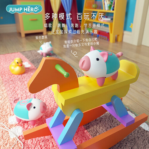 内置动力系统,奔跑跳舞样样在行,让孩子爱不释手。整个小猪的造型饱满圆润,有助于宝宝抓握,锻炼手指灵活度。