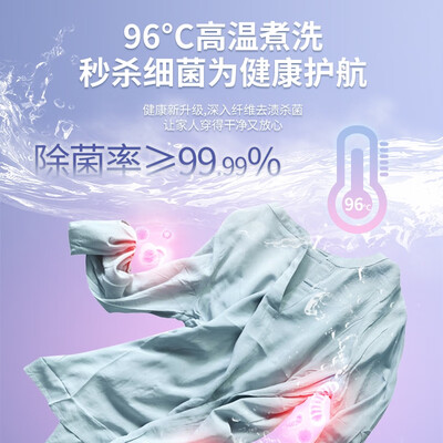 高温筒自洁,自己冲刷内筒中的污渍,营造健康的洗衣环境。支持高温煮洗,强力去除顽渍的同时,还能消灭衣物中的细菌。