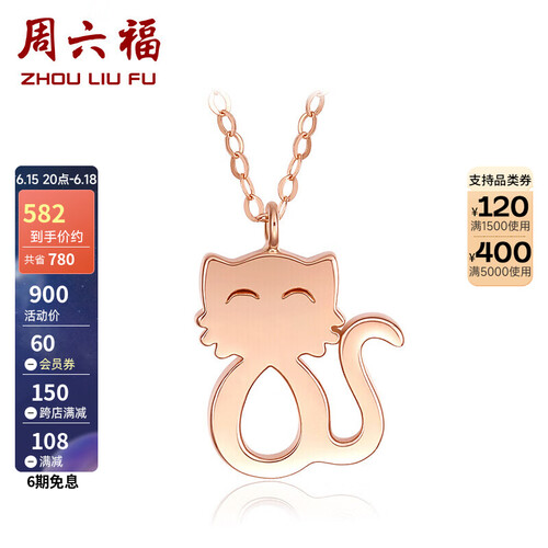 周六福 趣味萌猫 K金项链