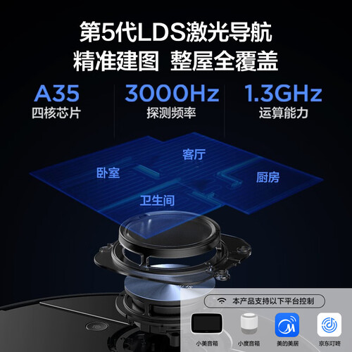 采用LDS激光导航,做到整屋全覆盖,提升了清洁效率,可避免重复清扫;电量不足时会自动返航充电,完成后自动返回,防止漏扫。