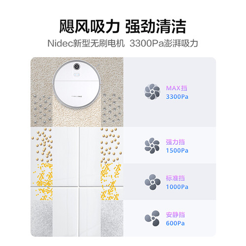 配备500mL大尘盒,长时间不用倒垃圾,更省力。59dB低噪清扫,清洁污垢不扰人,让你几乎听不到运行声音。