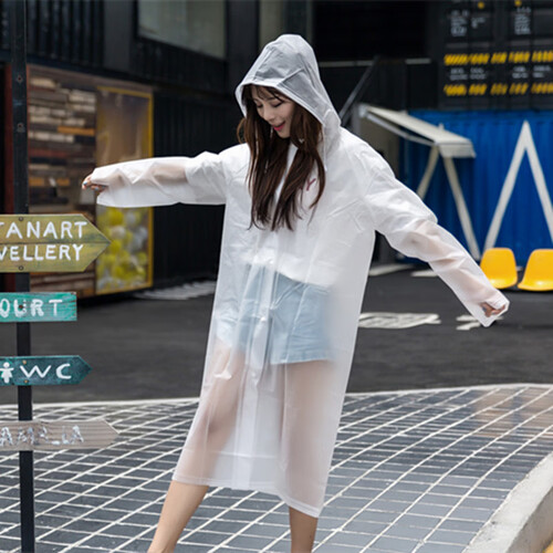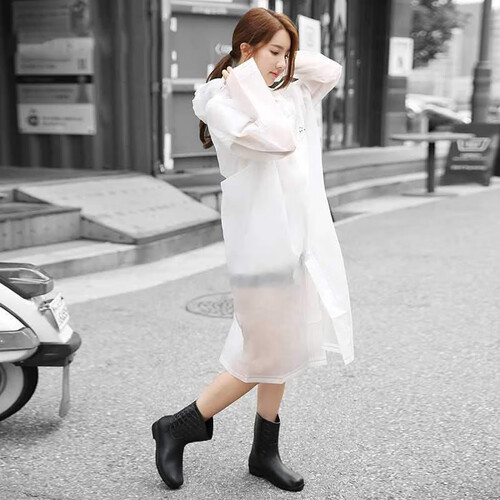 半透明雨衣,采用加厚EVA材质设计,冬天穿厚衣服也能穿,且可反复长期使用。雨衣质地较轻,且柔软有韧性,折叠放入背包不占空间。