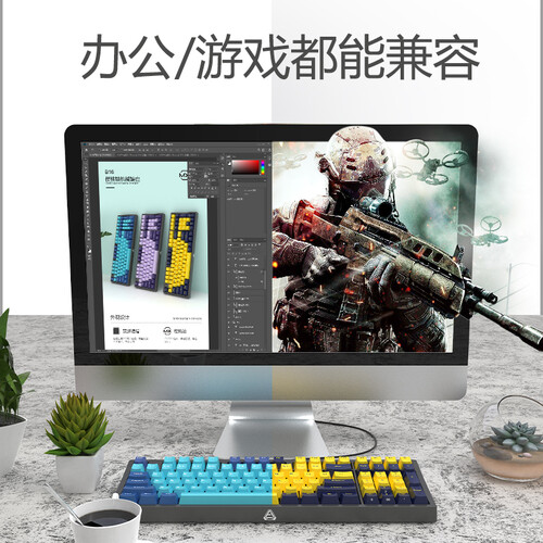 选用双色PBT闭口键帽,美观大方,又具有舒适的敲击体验。配置Cherry青轴,具有稳定耐用和手感舒适的特点。