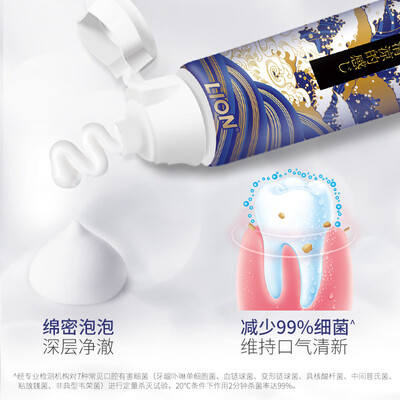包装采用日本浮世绘元素,当绵密泡泡包裹住牙齿时,宛若感受镰仓海风的清爽气息。牙膏泡沫浸透齿缝,带来深彻洁净的清洁体验。