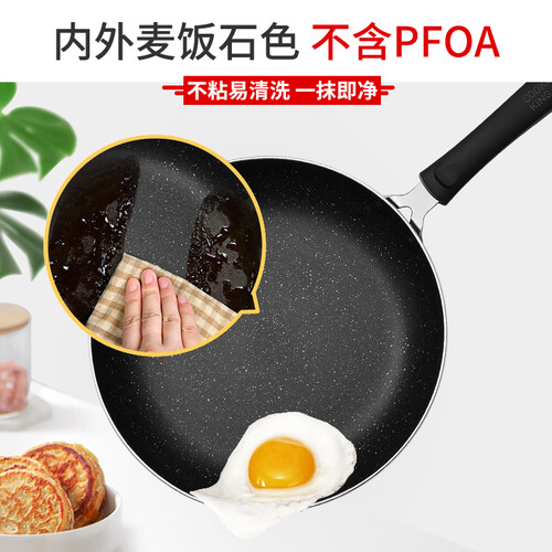 这款套装是优质的麦饭石涂层设计,日常使用的过程中不会有任何的粘锅现象。加上平底锅底设计,加大受热面积。
