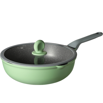 锅体整体设计以竹青色为主调,青翠色泽与淡淡石之纹融合,能为厨房增添清新气息。5mm厚锅底设计,防止热量流失。