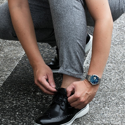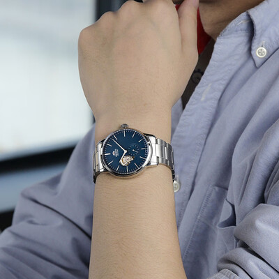 表盘采用金银色相互搭配,读取时间的辨识度更高。搭载人工合成蓝宝石镜面,观时更清晰明了。