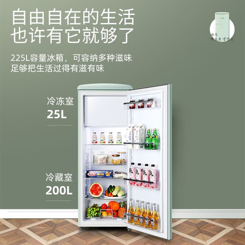 古典外观设计,充满复古气息,轻松融入不同家装风格。225L大容量,科学分区一目了然,食材放置井然有序,满足全家饮食爱好。