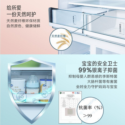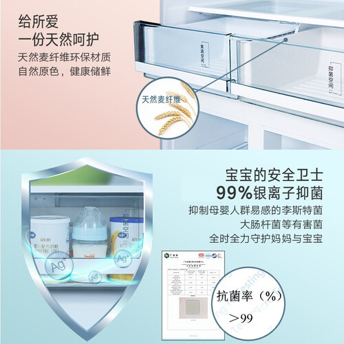 搭载独立母婴空间,单独存储母婴食材,储鲜有保障。采用Ag+生态抑菌技术,可以抑制99.99%的细菌,食材更安全。