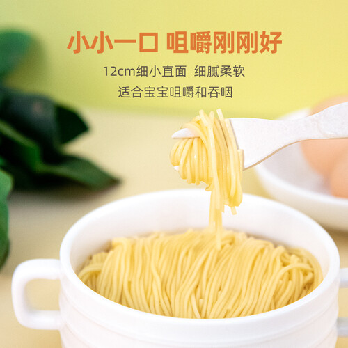 不添加食用盐,自然清淡的口感,可减少对肠胃的刺激,给予娇嫩肠胃细腻呵护。采用三醒三蒸,面条细滑柔软,更能获得孩子喜爱。