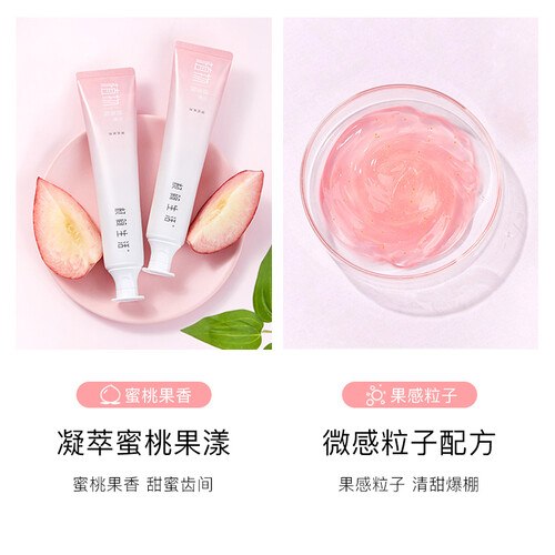 蜜桃果香牙膏,能实力KO口腔异味,让人无惧近距离交流;同时晶莹的膏体,能温和清洁牙齿,不伤牙釉质,是家中常备洁齿好物。