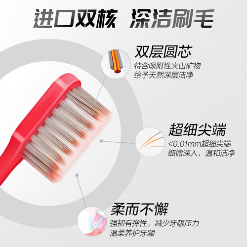 添加火山矿物元素,吸附走牙渍上的污渍,还给你洁净的牙齿观感。强韧有弹性的刷毛,减少对牙龈的压力,避免刷牙时出血。