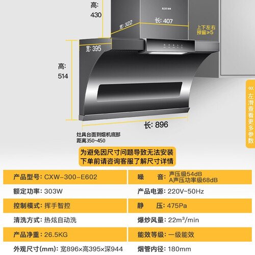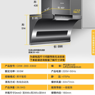采用新颖的7字型结构设计,颜值更加吸睛夺目,彰显卓尔不群的时尚品位。搭载动力强劲的优质电机,净烟效率大幅提高。