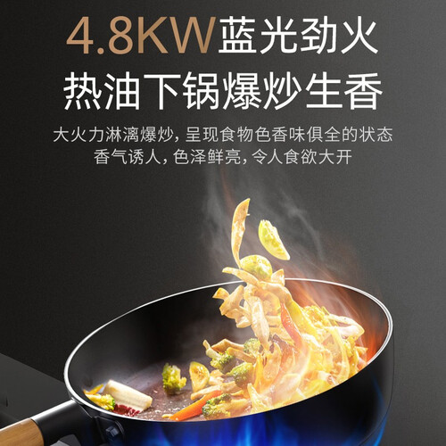 可保证4.8kw的猛火,轻松激发出食材的香脆口感,家人吃得更过瘾。并且采用双灶的设计,一次可烹饪不同美食,提升烹饪效率。
