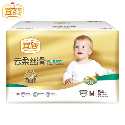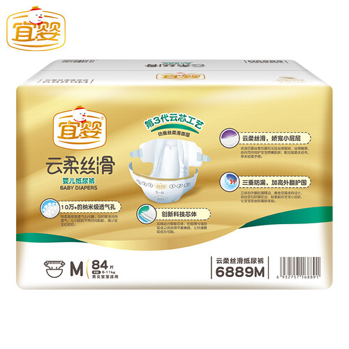 创新科技芯加持,能快速吸收尿液,尿满也不起团、断层。融入仿若蚕丝的细纤维,触肤更加的柔软舒适。