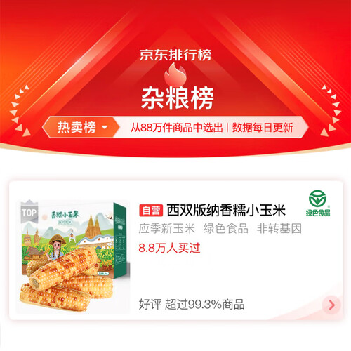 源自西双版纳的香糯小玉米,自有基地新鲜采摘,健康种植。玉米粒香糯可口,给你软糯清甜的食用体验。