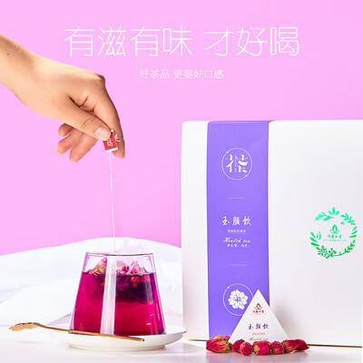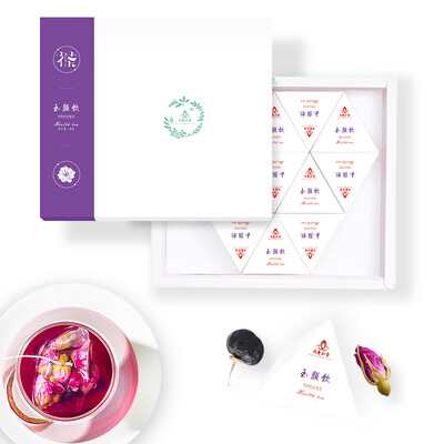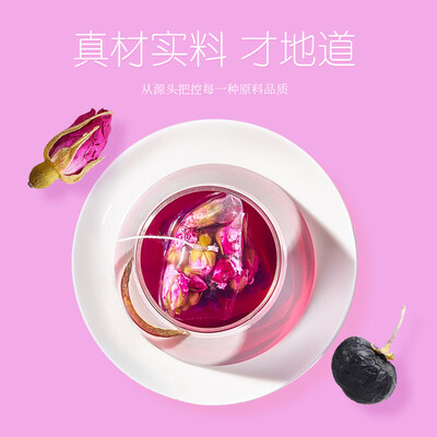 选用优质黑枸杞、重瓣玫瑰花为原料,科学配比而成,冲泡后茶汤色泽透亮鲜艳。简约包装盒设计,自饮或是送朋友都是佳选。