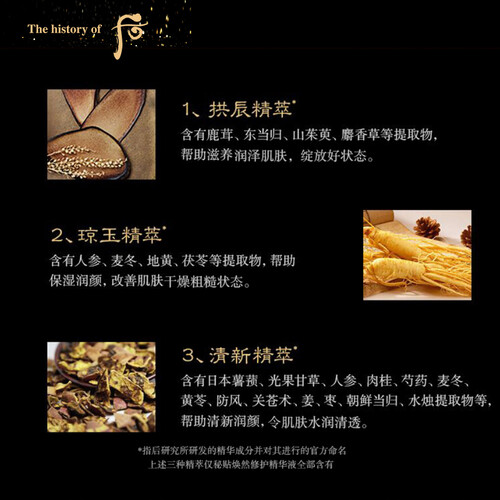 含人参、鹿茸等珍稀成分,给肌肤提供多维滋养,密集修护肌肤受损屏障。丰盈保湿,提升肌肤的水分亲密度,让肌肤更加水润又光泽。