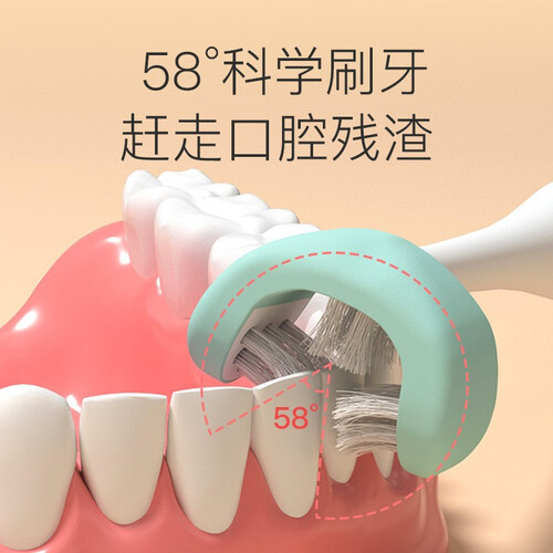 U型包裹式的刷头,不仅能不磨损口腔壁,还能多方位洁净牙齿。磨圆的软刷毛,能在清洁的同时不伤宝宝牙床。