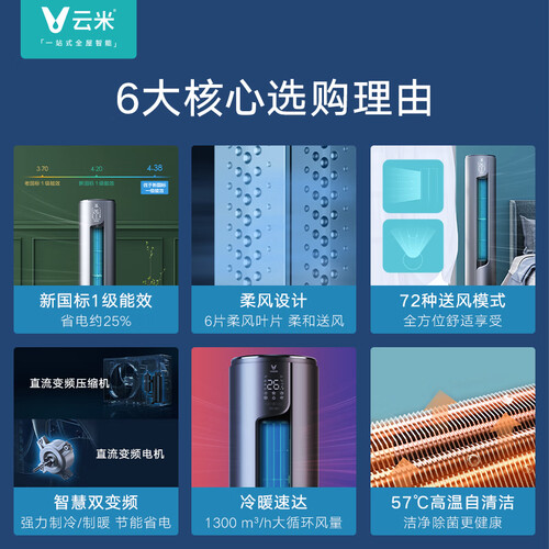内置6片柔风叶片,多达72种送风模式,出风轻柔,满足全家吹风需求。每小时1300m³循环大风量,控温准确至±0.5℃。