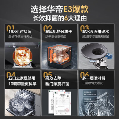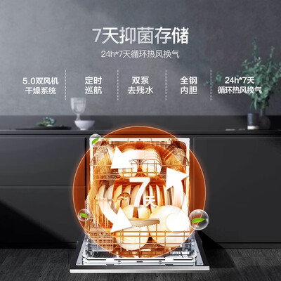 采用六种智洗程序,满足不同洁净需求,无惧中式重油污,避免脏污残留。双泵排水设计,打造无残水空间,防止异味生成。