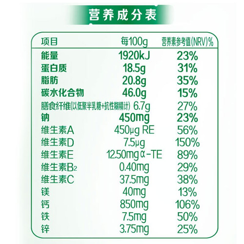 添加活性益生菌和复合益生元,双益加倍助力肠蠕动,守护家人健康。蕴含膳食纤维和高钙,每天两杯满足全家营养需求。