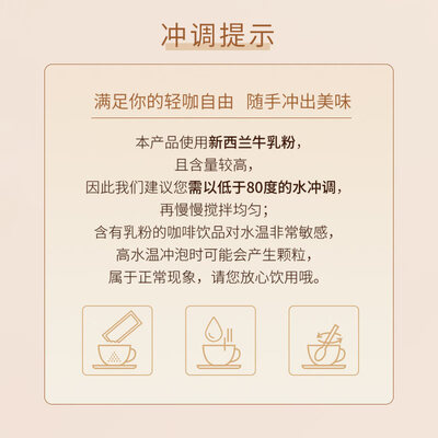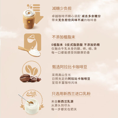 减糖配方,饮用无负担,健康达人也可放心享用。阿拉比卡咖啡豆制作,源自高山的咖啡豆,颗粒饱满,制作的咖啡品质更上乘。