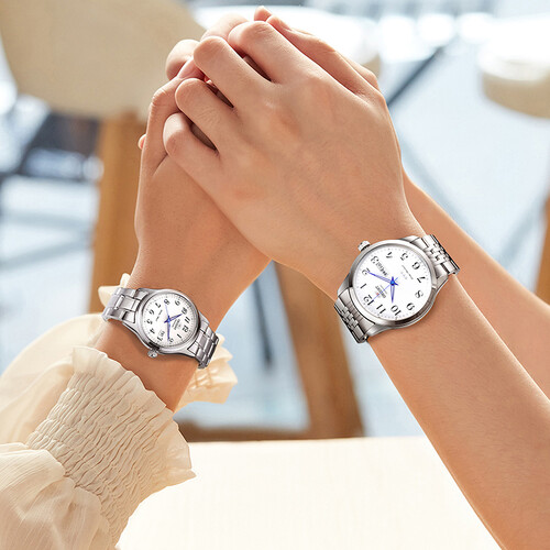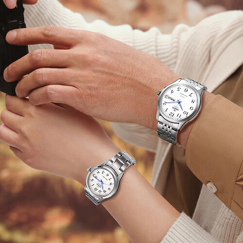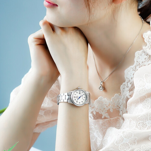 品质牛皮表带,配以三折式表扣,触感细腻更加贴合肌肤。经典时尚的圆形表盘,简约大气,也便于日常穿搭。