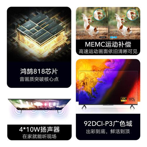 这款电视机有多样的智能功能,可以轻松实现人机智能交互,让家庭多方位有效识别,一呼即应,畅享声控智能生活。