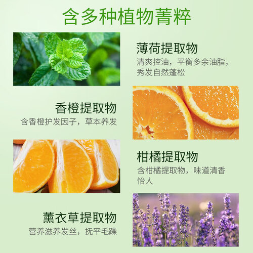 含有丰富的香橙护发因子,通过草本养护头发。添加了薰衣草提取物,给发丝补充营养,能够抚平毛躁发质。