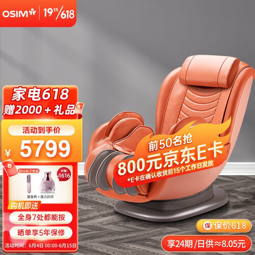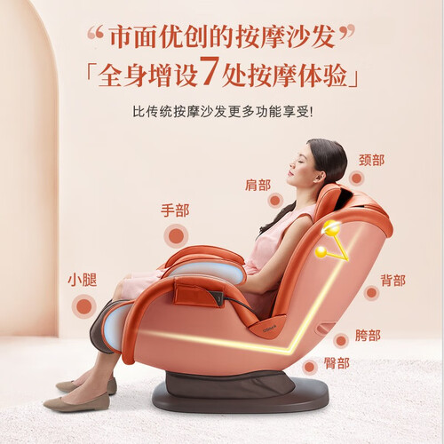 亮丽橙色按摩椅,独特花苞造型设计,别致吸睛,不管摆放在哪里都是一道亮丽的风景线。机身小巧,是小户型家庭的好选择。