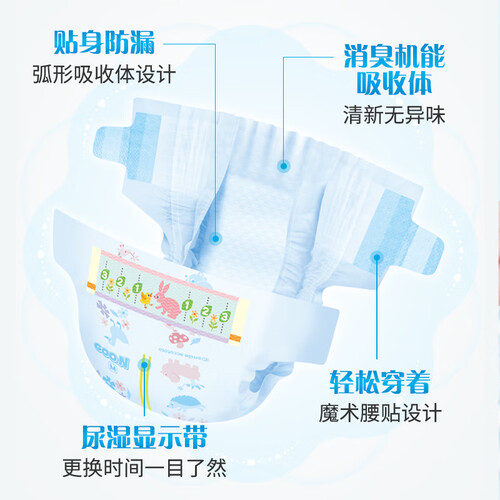 含有维E亲肤成分,呵护宝宝敏感肌,不打孔底层母亲福透气更加柔软,还有3D立体表层,瞬间吸收不闷热。