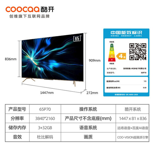 酷开 P70 全面屏电视