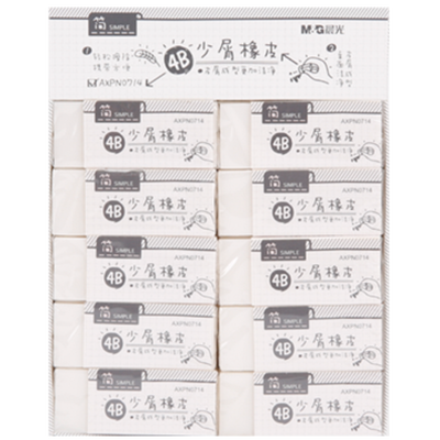 外观简约透明,材质柔软适中,使用时擦屑少,擦除干净。每一块都有独立小包装,体积小巧,便于存放于携带。