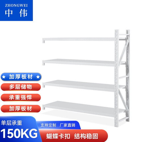 适合超市、商店等商业化场合使用的置物架,双面均可摆放物件,能够更好地展示商品,层高设计也非常合适,不会过高而难以取物。