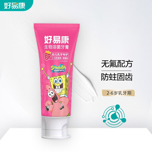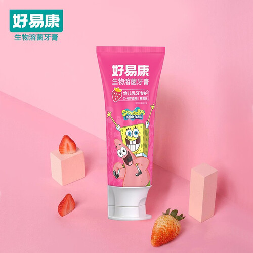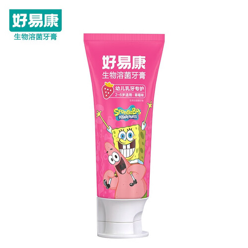 全新海绵宝宝包装,香甜果味刷牙也快乐。生物溶菌酶,溶解多种口腔细菌。温和呵护宝宝口腔,维护牙齿健康。
