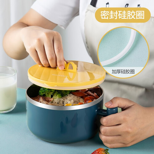 泡面碗采用中空设计,能够有效隔热,防止高温烫手;采用加厚硅胶密封圈设计,密封效果好,紧贴盖身不易掉落。